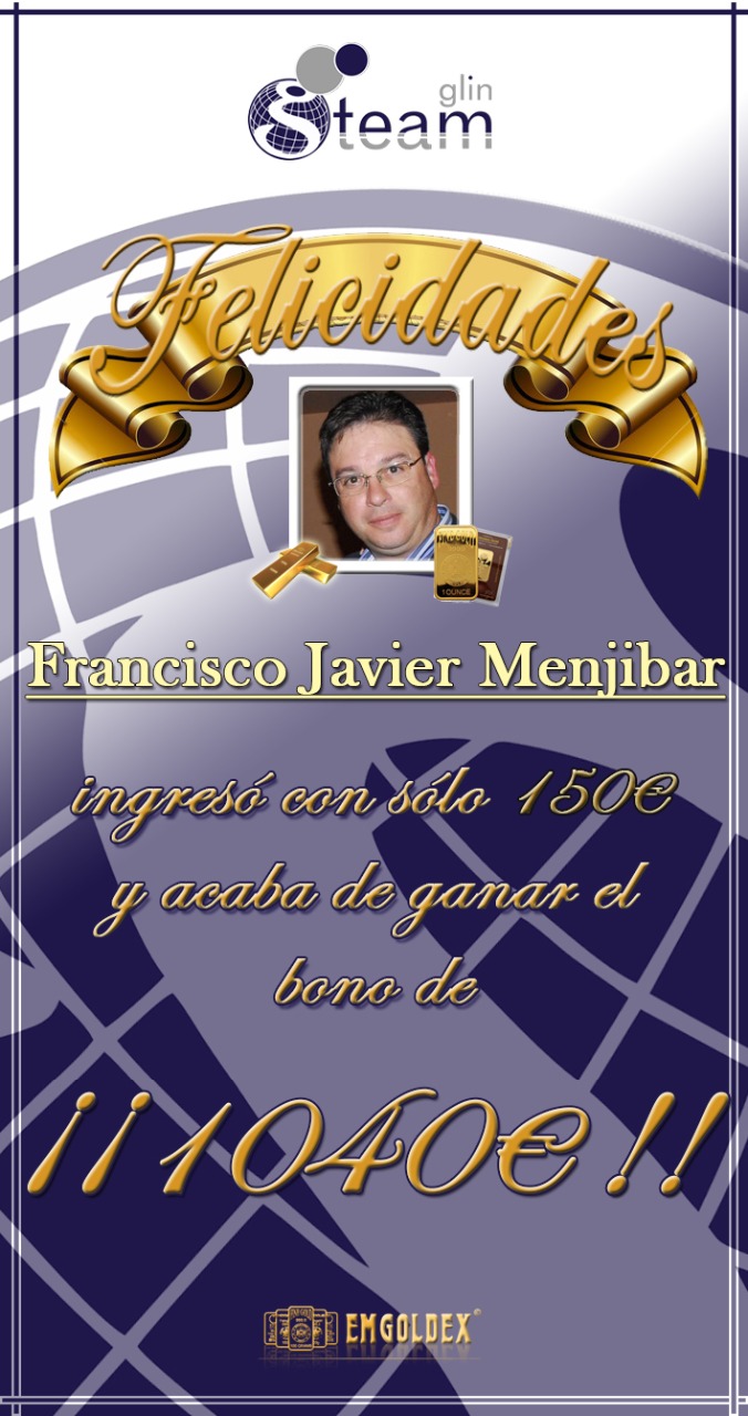 En el día de hoy, nuestro compañero Francisco Javier Menjibar ha pasado de la mesa preliminar con la que todos iniciamos en Glinteam nuestro negocio en Emgoldex a la mesa Principal consiguiendo la próxima semana, para ser más exactos, el día 18 de Noviembre la bonificación de 1.040€, dinero que empleamos para poder acceder con mayor facilidad a las Mesas Principales.